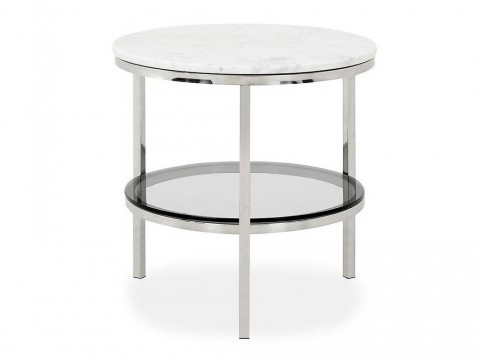 Magasság: 500 mm || Átmérő: 500 mm || Asztallap anyaga: Márvány || Asztallap típusa: Polccal || Szín: Ezüst || Szín: Fehér || Anyagok: Fém